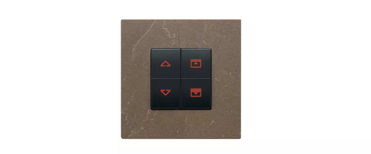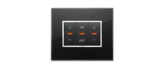 It is possible to regulate the lights intensity managing any kind of lamp: incandescent, fluorescent, LED and energy saving with the ability to furnish all environments with colorful light effects. Laser-engraved icons indicate the function and, with just one control, you can switch off all lights.