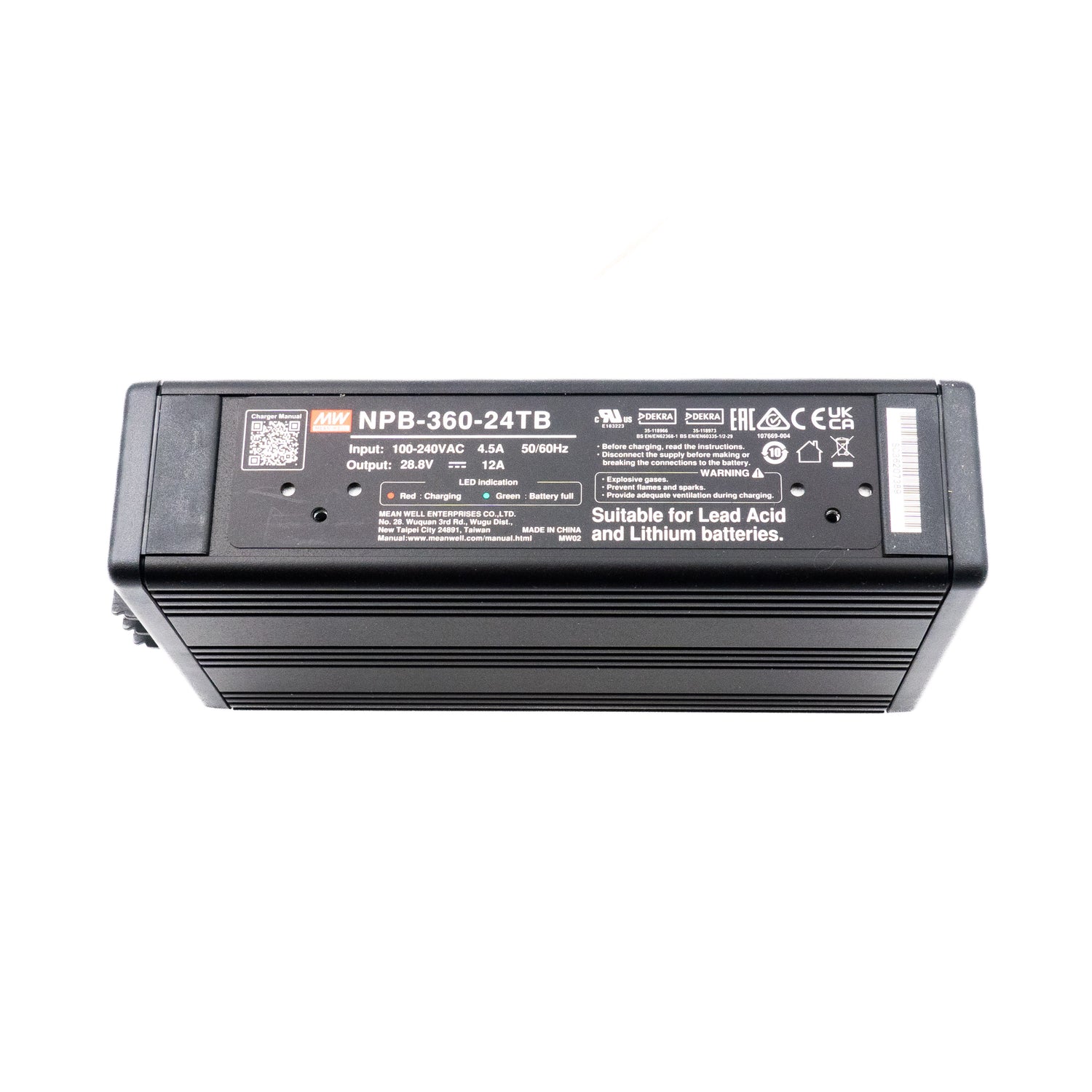 AC-DC Single output battery charger with PFC; 2 or 3 stage charging; Universal AC input; Output 14.4Vdc at 20A with terminal block